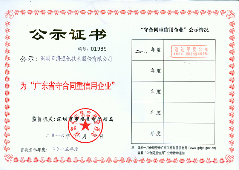 • 10月,被深圳市中小企业信用担保中心授予“诚信中小企业”
